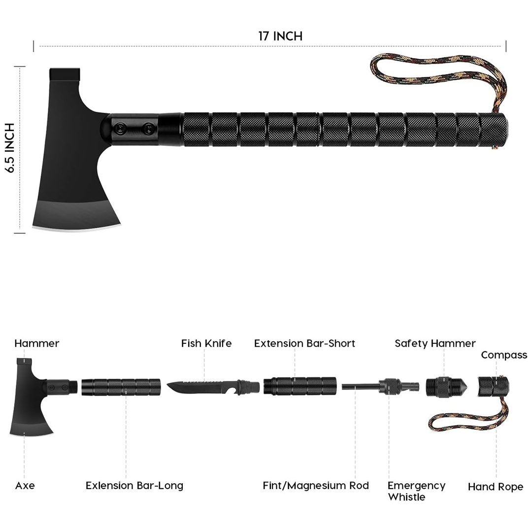 High-carbon steel holds a razor edge and sharpens easily in the field with basic tools. The ferro rod striker integrated into the handle means you always have reliable fire-starting capability. When you're completely on your own, this axe gives you the versatility to build shelter, process food, create other tools, and maintain warmth.